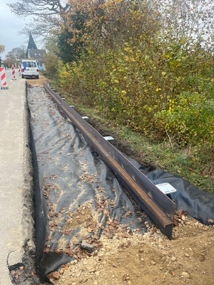 geschaffen, um den neu aufgeschüttete Fussweg gegen Auswaschen zu schützen sowie die Aufnahmen für den später erstellten Zaug zu montieren.