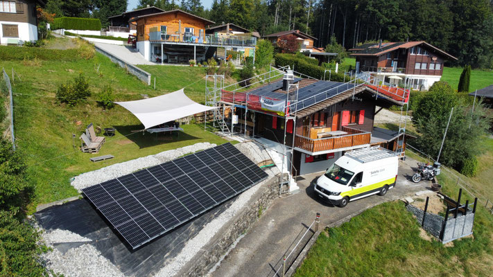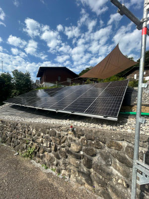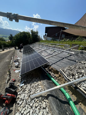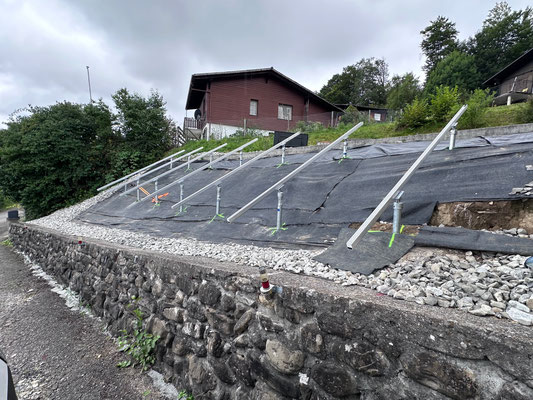 In Brünisried wurde eine PV-Anlage realisiert, welche 3 unterschiedliche Ausrichtungsanforderungen hatte. Der Neigungswinkel, Ausrichtung zur Rasenkante sowie die maximale Höhe ab Boden waren