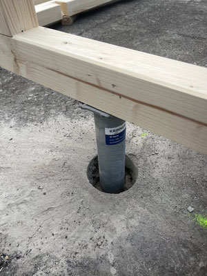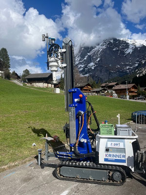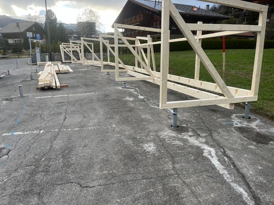 In Grindelwald wurde ein temporärer Velounterstand realisiert. Punktgenaue Kernbohrungen durch den Asphalt ermöglichten den Zugang für die Lastpunkte, über welche ebenso der Ausgleich des Terrains erledigt wurde.